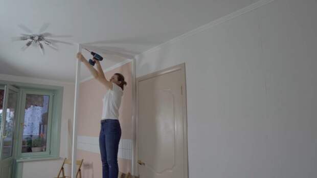 Закрепить к стене, потолку и полу основу будущей перегородки.
