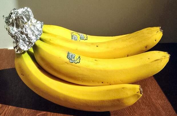 Хвостик банана нужно завернуть в фольгу. / Фото: housechief.ru