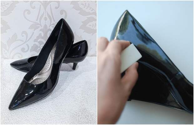 Ластик уберет царапины с черных лаковых туфель