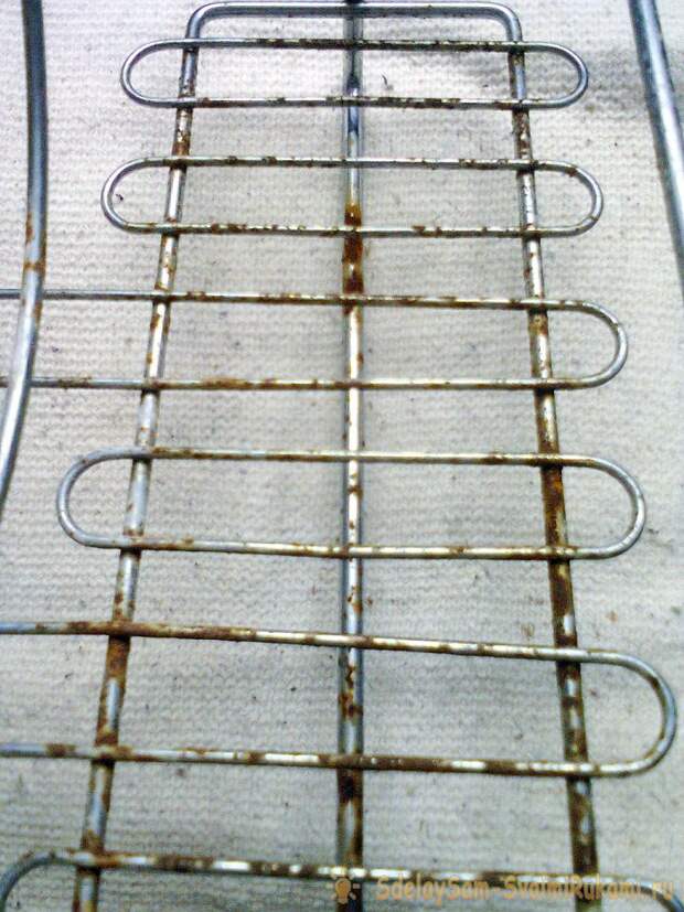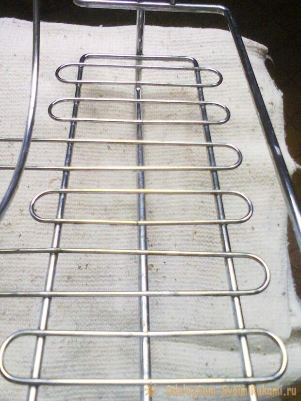 Прошло 12 часов. После того, как достала сушилку из таза, сильно расстроилась: вся ржавчина была на месте. От расстройства взяла губку и средство для мытья посуды. Каково же было моё удивление, когда всё очень легко отмылось, только на стыке прутиков пришлось немножко почистить старой зубной щёткой. Процедура заняла пятнадцать минут (не более). Посудите сами, как здорово получилось. Конечно, если внимательно присмотреться, можно увидеть редкие мелкие чёрные точки в тех местах, где была рыхлая коррозия. Возможно, стоит поискать ещё какое-то эффективное средство.