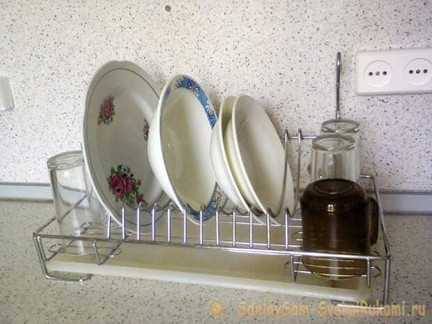 Я давно смотрела на свою сушилку для посуды. Она металлическая, куплена в магазине эконом-класса. Качество соответствующее. Так как сушилка постоянно контактирует с влагой, то через некоторое время наш предмет интерьера покрылся неприятным рыжим налётом.