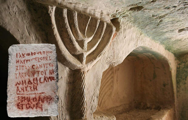 В двух часах езды от Тель-Авива есть целая сеть древних катакомб. Их возраст датируется 2-4 веками нашей эры. Здешний древний некрополь Бейт-Шеарим славится своей разнообразной историей и прекрасными произведениями искусства с надписями на древнегреческом, арамейском и еврейском языках. Именно здесь в этом древнем царстве смерти учёные обнаружили необычную гробницу. На стене возле одной из могил была угрожающая надпись на древнегреческом. Зловещее впечатление усиливало то, что начертана она была красной краской, что делало её похожей на надпись кровью.