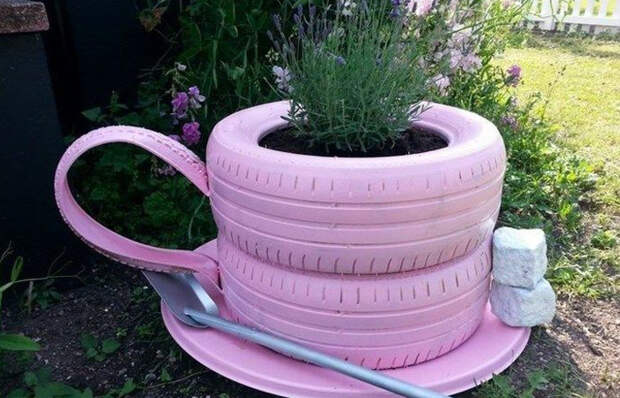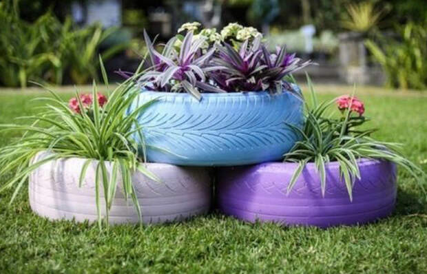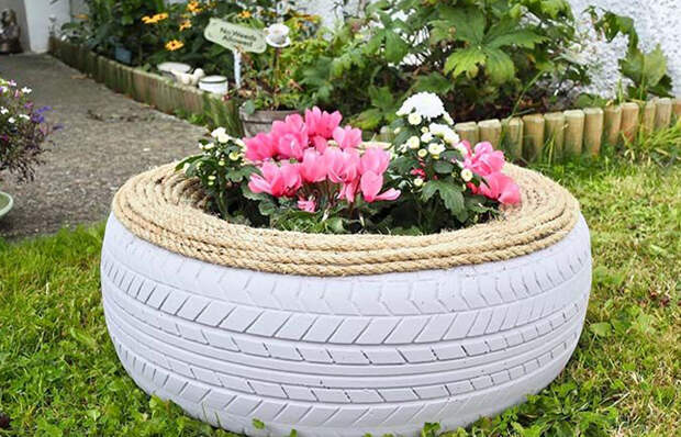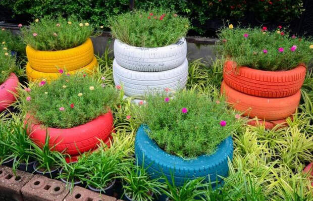 У креативных огородников ни одна шина не пылилась в гараже. Из них они изготавливали самые разные грядки. К примеру, шина выворачивалась наизнанку ради получения оригинальной формы. А затем в нее сажали ампельные растения. Также шины подвешивались на веревки или прибивались к хозяйственным постройкам. Получалась клумба в морском стиле.