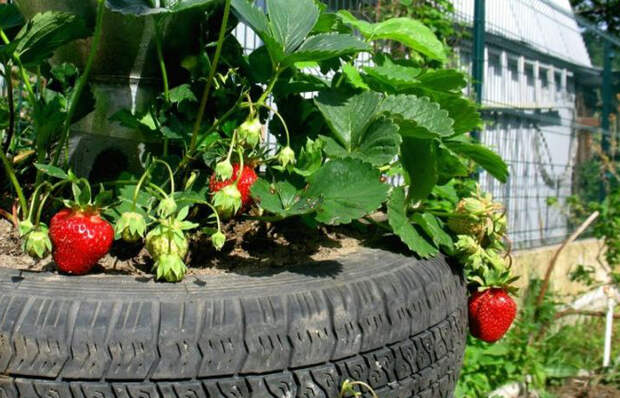 Под действием солнечных лучей клумба из шин начинает нагреваться и выделять в грунт токсичные соединения. Растения, которые находятся в такой земле, впитывают канцерогены. Огородник получает опасные для здоровья продукты. К примеру, выращенная клубника или лекарственные травы.