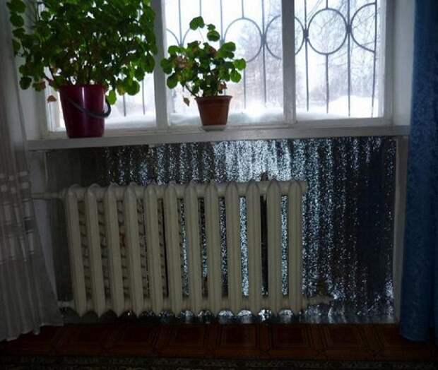 Поэтому освободите их от всего лишнего, а затем установите за радиаторами отражающие экраны из фольги. Их можно легко сделать самостоятельно – для этого возьмите обычную пищевую фольгу и закрепите ее на куске картона. Зачем это делать? Фольга отражает тепло обратно в комнату, благодаря чему батареи греют не стены, а квартиру.
