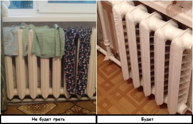 Большинство россиян, стремясь поскорее высушить постиранные вещи, превращают радиаторы отопления в полноценные сушилки. Белье действительно уже через несколько часов можно убирать в шкаф, вот только в квартире из-за таких действий очень холодно. Батареи должны беспрепятственно отдавать тепло в квартиру, а не греть ваши носки и футболки.