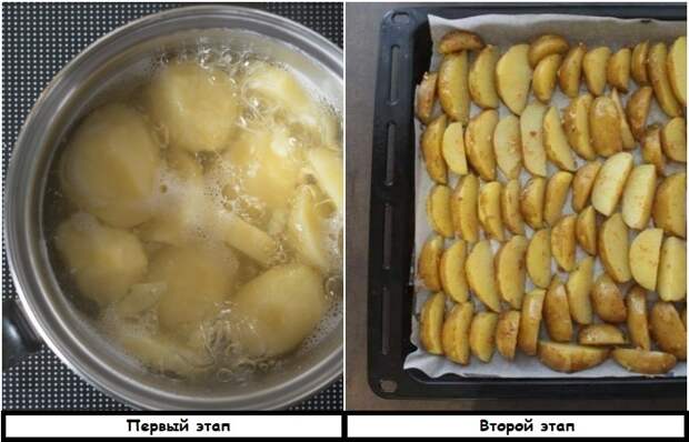 Когда мы запекаем картофель в духовке он часто получается сырым внутри. Причем, совсем неважно, сколько времени мы держим его внутри – 40 минут или час – результат всегда один и тот же. К счастью, есть один лайфхак, который позволит приготовить идеальный картофель по-деревенски и его вариации. Перед тем, как отправлять картофель в духовку, отварите его в кипящей подсоленной воде.