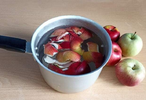 Прокипятите яблочную кожуру в кастрюле.