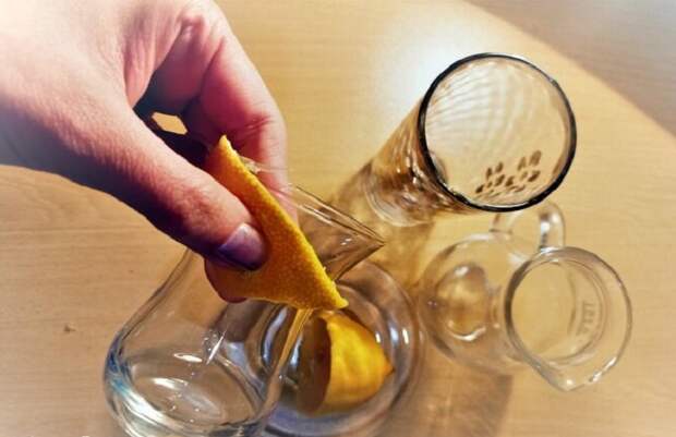 Хитрость 1: Лимонная кожура помогает чистить стаканы