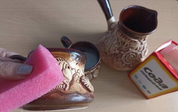 Натрите керамическую турку содой.