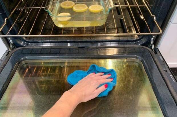 Еще одно актуальное средство для решения бытовых задач – это лимонный сок либо лимонная кислота. Если в духовке есть застарелые пятна, которые не получилось убрать привычными способами, лимон придется как нельзя кстати. Кроме основного ингредиента, вам также понадобится глубокая стеклянная миска либо другая емкость, которую можно будет греть в духовке. Наполните ее водой, выдавите сок двух-трех лимонов (ориентируйтесь на сложность загрязнений и размер духовки) и поставьте на противень внутрь прибора. Запустите таймер на 30 минут и идите занимайтесь другими делами. Когда время закончится, и духовка остынет, уберите размягченные загрязнения влажной губкой, а в конце протрите поверхность насухо чистой тряпкой.
