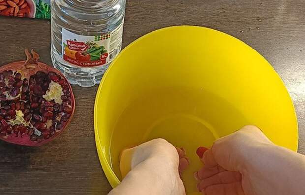 Просто опустите руки в раствор уксуса с водой до начала чистки овощей. Для получения раствора следует смешать часть уксуса и три части тёплой воды. Достаточно будет пары минут, чтобы в дальнейшем ваши руки не окрасились. После того как вы подготовите все овощи, вымойте руки с мылом и нанесите на них питательный крем.