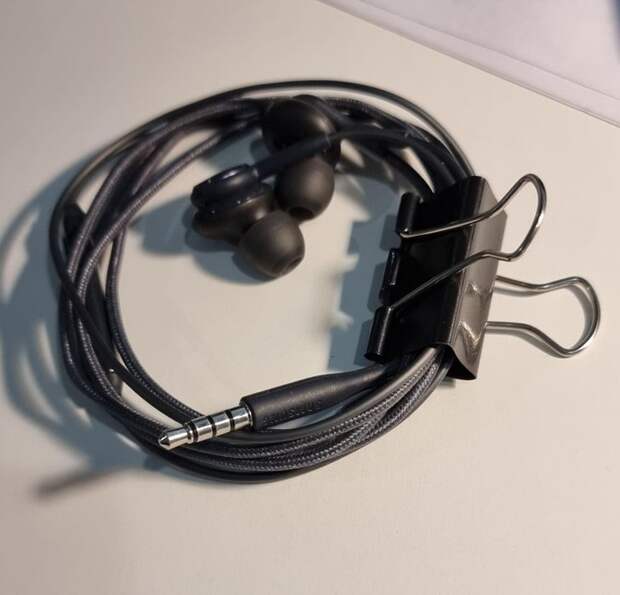 Используйте зажимы для бумаг, чтобы аккуратно убрать наушники