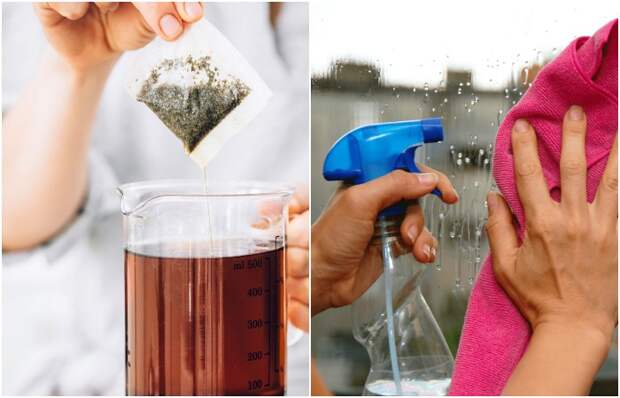 На первый взгляд совет может показаться странным, но на деле чай справляется с грязью лучше дорогостоящей бытовой химии. В его состав входят дубильные вещества, которые отлично растворяют загрязнения, в том числе и известковым налет, из-за которого стекла кажутся тусклыми.