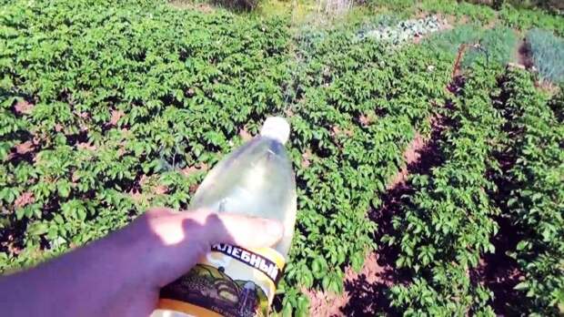 Картофель опрыскивается из бутылки сразу после появления всходов. Не нужно заливать каждый куст, достаточно просто разбрызгать раствор по плантации, чтобы он в своем большинстве попал на листья.