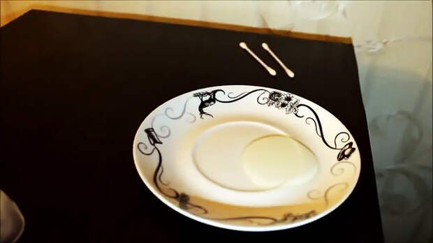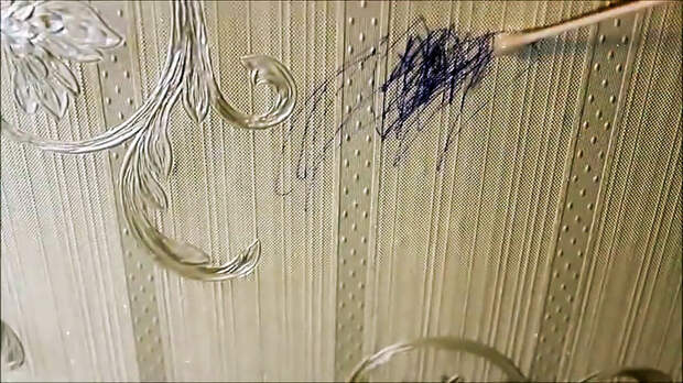 Макаем палочки в белизну и аккуратно наносим на следы от ручки.