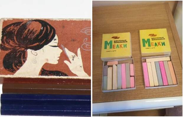 Создание теней для век происходило следующим образом: девушки покупали в магазине детские мелки, растирали их в порошок и смешивали с небольшим количеством воды. Вуаля – тени готовы! А в качестве подводки использовали… барабанная дробь… карандаши для рисования! Обычно подруги скидывались на такие наборы, чтобы каждая смогла получить желанный оттенок по приемлемой стоимости.