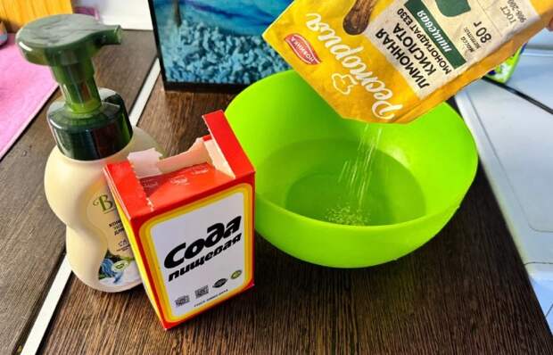 Если вы хотите легко и быстро очистить поверхность от жирных пятен, то следует сделать универсальное средство для уборки. Для это в емкости смешайте одну ложку лимонной кислоты, одну ложку средства для мытья посуды, одну ложку соды и стакан теплой воды. Тщательно размешайте получившуюся смесь. Именно это средство без труда отмоет любые жирные пятна на вашей кухне.