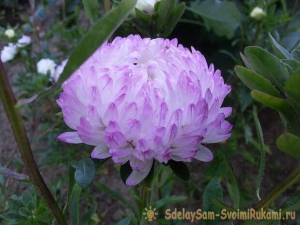 Астра — это еще одно поздноцветущее растение, которое украшает сады своими цветочными головками в бледно-голубых, лиловых, розовых, белых, красных, золотистых и многих других оттенках. Выведены сорта разной высоты, самый низкий из которых не превышает 30 см и образует плотные цветочные ковры, скрывающие листья и стебли. Более высокие сорта красиво смотрятся в сочетании с вечнозелеными кустами или по краю газонов. Растение прекрасно себя чувствует на солнце или в полутени, но для обильного цветения нуждается в плодородной и хорошо дренированной почве. Возможности комбинирования астр практически безграничны, ведь цветовая палитра включает огромный спектр розовых и фиолетовых тонов. Подходящими компаньонами являются невысокие подсолнухи, хризантемы и декоративные травы.
