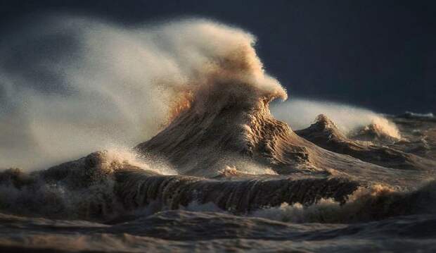 Дэйв Сэндфорд – спортивный фотограф, который увлекается всем, что так или иначе связано с водой. На этот раз он запечатлел грозный нрав озера Эри, которое находится в Канаде и США. Обитавшее здесь племя называло озеро «Erige» («кошка») за его непредсказуемый и иногда действительно опасный характер.