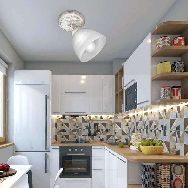 Что касается кухонного фартука, то его лучше оформить не цельным полотном, как в 2000-х, а плиткой. Используйте яркие цвета, орнаменты, оригинальную кладку. Если кухня выполнена в нейтральных тонах и минималистичном стиле, такой фартук станет прекрасным дополнением.