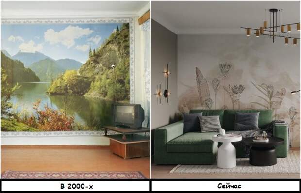 Ярким признаком интерьера нулевых были шкафы-купе с рисунком на дверцах, фотообои, кухонные фартуки с 3D-эффектом (все же помнят эти гигантские фрукты и овощи, которые сопровождали нас во время завтрака, обеда и ужина?) Они выглядели настолько красиво и необычно, что сразу вызвали восторг у населения. Такие вещи использовали для создания акцентов в интерьере, и долгое время они действительно были востребованы. Но, увы, ничто не вечно.