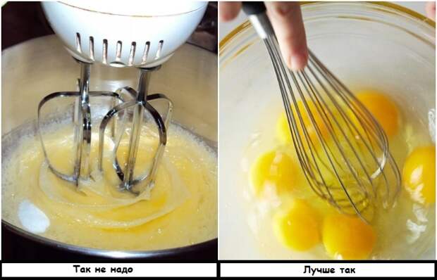 Чтобы такого не произошло, аккуратно взбивайте яйца – важна умеренность и правильный порядок соединения ингредиентов. Ваша цель – не сделать устойчивую пену, как для безе, а просто объединить желтки с белками, чтобы получилась однородная жидкость. Минуты будет вполне достаточно (а в случае с миксером – 10-15 секунд на самой маленькой скорости). Также с осторожностью добавляйте молоко или сливки, ведь они делают массу тяжелее. На пару яиц достаточно одной столовой ложки.