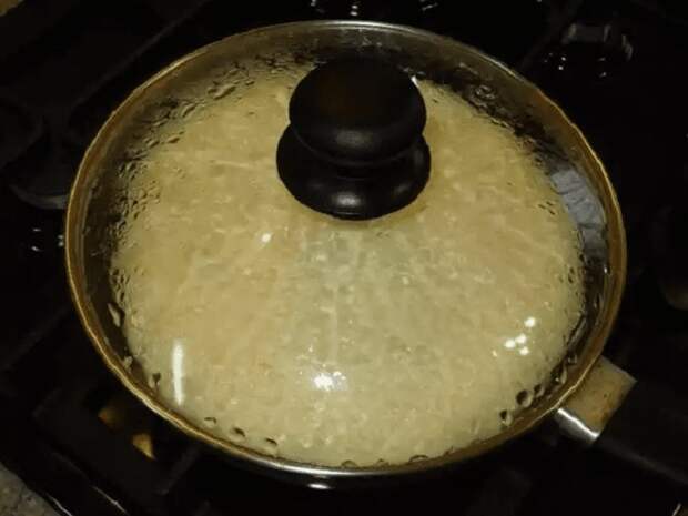 После того, как вы выльете на разогретую сковороду взбитые яйца и накроете крышкой, ее нельзя будет открывать до самого конца приготовления блюда. Если вы сделаете это раньше, то омлет опадет из-за резкого снижения температуры. Лучше используйте стеклянную сковороду и определяйте готовность блюда через прозрачный материал.