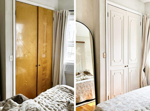 «В прошлом месяце мне пришла в голову безумная идея обновить старые и поврежденные дверцы шкафа. Работы было много, но оно того стоило»
