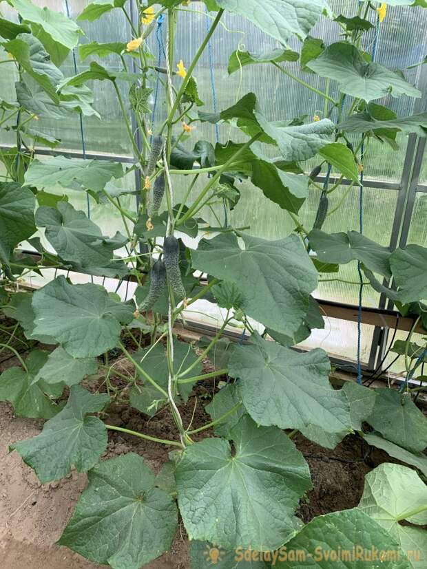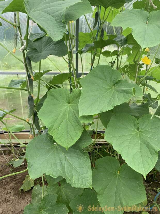 Огурцы любят влагу. Но они боятся сквозняков. Поэтому в парнике оставляю открытой форточку с одной стороны.