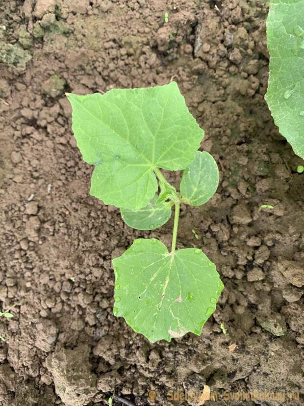 Огурцы очень нежны, и операции надо делать очень аккуратно. Готовлю землю. Перекапываю, вношу навоз, хорошо рыхлю. Сажаю рассаду с интервалом 25 сантиметров друг от друга.