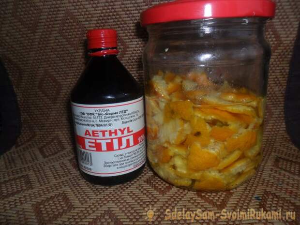 2. Наполняем банку кусочками мандариновой кожуры и заливаем спиртом.