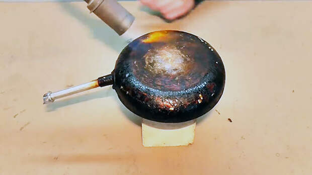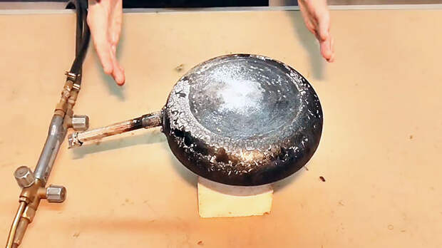 Если нагревать на огне эту кухонную утварь без содержимого, то температура прокаливания превысит рабочую, и нагар из жира и масла начнет отслаиваться от поверхности сковороды и даже непосредственно выгорать.