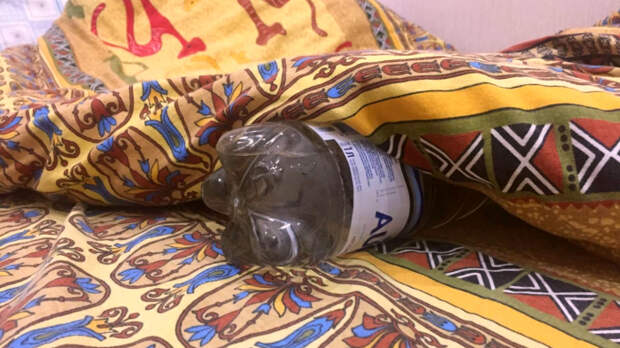 Любая грелка стоит денег. А электрические грелки опасны, так как могут возгореться среди ночи. Совершенно безопасный вариант друга в постель холодной сентябрьской ночью - пластиковая бутылка, наполненная кипятком из чайника. Тепло данный гаджет будет держать два часа - этого достаточно, чтобы отойти ко сну даже самым невротичным особам.