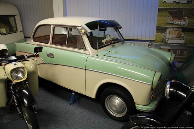 14. Приподнятый Трабант Р50 в дрезденском музее ГДР.