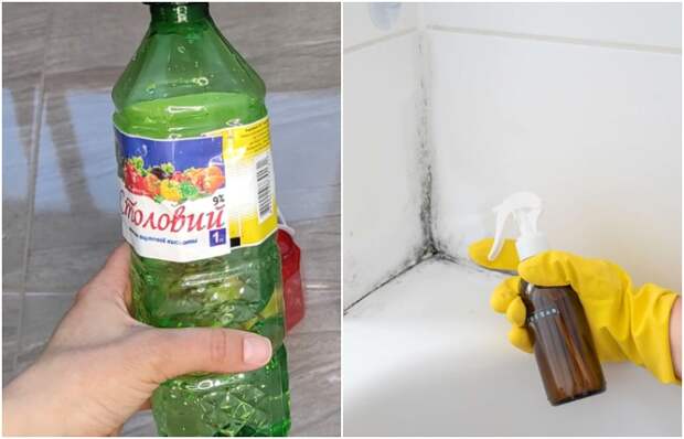 Если вы не хотите использовать агрессивную бытовую химию, так как считаете ее опасной для здоровья, обратитесь за помощью к народной мудрости. Тот же уксус справляется с плесенью не хуже профессиональных средств. Налейте его в пульверизатор, чтобы было удобнее использовать, а затем распылите на пораженные участки и оставьте на один час. По истечении времени хорошо протрите стены, чтобы убрать остатки грибка.