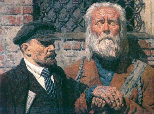 Гелий Коржев регулярно присутствовал на заседаниях президиума ЦК партии, но сумел остаться независимым художником и никогда не писал по партийному заказу. Просто не был на это способен. Лишь однажды взялся. Долго и мучительно разрабатывал образ вождя пролетариата и седовласого слепца. Менял композицию, сомневался, не мог найти художественное решение. Чиновники, увидев его эскизы, заказ передали другому художнику. А картина «Беседа» свет всё же увидела. Спустя 10 лет. За неё то он и получил государственную премию СССР. Удивительно, ведь образ Ленина на ней совсем нетипичный, да и мысль художника довольна уклончива.