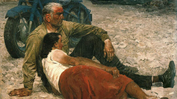 Взгляните, сюжеты социальные, а не социалистические. «Влюблённые» - не молодая уставшая пара. Они уехали подальше от глаз посторонних. Возможно, им негде встречаться, а может они вместе работают в поле. Эти влюблённые нетипичны, зато их чувство глубокое, как краски на холсте.