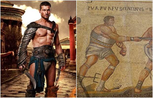 Другая популярная неточность в изображении гладиаторов связано, в том числе, с кинематографом. Так, например, в фильме Ридли Скотта представлены бойцов на аренах Колизея в виде загорелых мускулистых красавцев-атлетов, частенько ещё и полуобнажённых, а защита у них выглядит скорее как украшение. Вот только у настоящих гладиаторов было совсем другое обмундирование, да и к тому же приличным слоем подкожного жира.