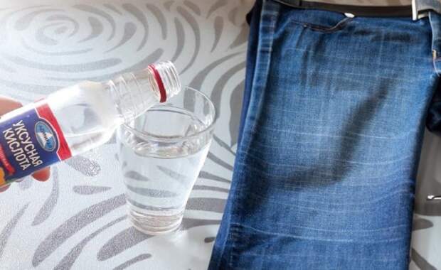 Как всегда на помощь придет любимый всеми хозяюшками уксус. Возьмите таз, налейте в него пять литров теплой воды, добавьте три столовых ложки уксуса и хорошо размешайте. Как только раствор будет готов, опустите в него джинсы и оставьте на десять минут, чтобы средство успело подействовать. По истечении времени достаньте одежду, прополощите в холодной воде, чтобы устранить специфический запах уксуса, хорошо высушите ее и прогладьте утюгом. Таким образом вы «запечатаете» цвет, и вашим джинсам будут не страшны никакие стирки.