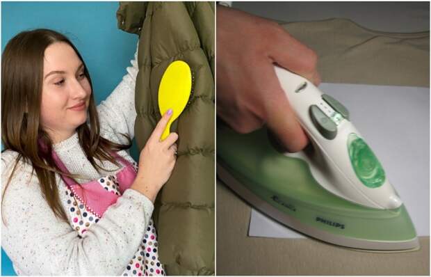 Также с проблемой может справиться отпариватель или утюг с функцией отпаривания. Выверните сухую куртку наизнанку, проблемные участки накройте влажной тряпкой или марлей, после чего обработайте их утюгом, активировав подачу пара. Не стоит надавливать на прибор – суть данного метода заключается именно в термическом воздействии на ткань.