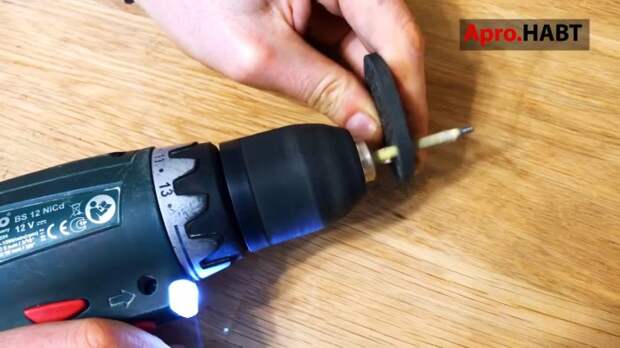 После ночи в уксусе, сетка покрывается черным налетом, который удаляем салфетками или вафельным полотенцем. Каждое отверстие прочищаем наждачной бумагой, свернутой в трубочку. Для ускорения процесса можно воспользоваться дрелью, зажав в патроне наждачную бумагу, намотанную на гвоздь без шляпки.