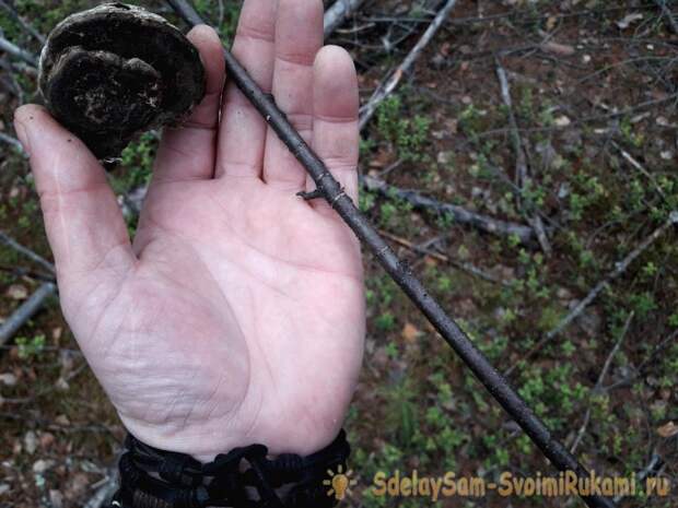 Так же понадобится любая тонкая ветка, на которую можно насадить этот гриб.