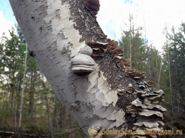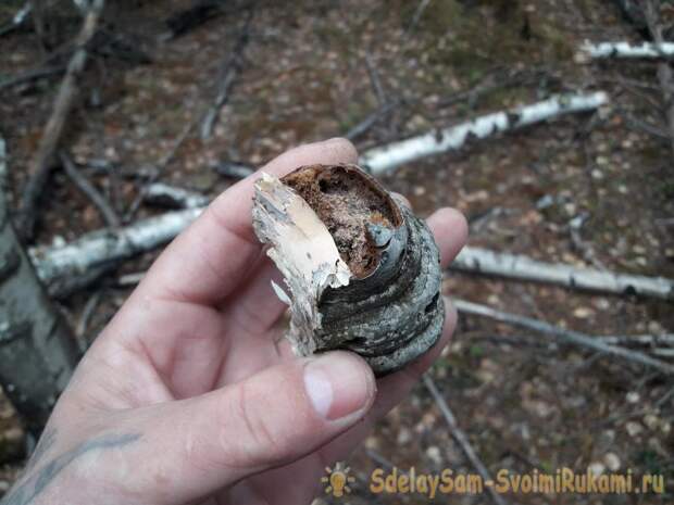 Этот способ имеет два варианта, очень похожие между собой. Их, наверное, можно обозвать «стационарными»! Если в первом способе можно идти после обработки куда захочется, то эти два способа привязаны к определённому месту, и защищают от насекомых только в пределах стоянки. Они хороши, например, на рыбалке, или просто на привале, во время похода. Итак, вариант первый: это гриб-трутовик.