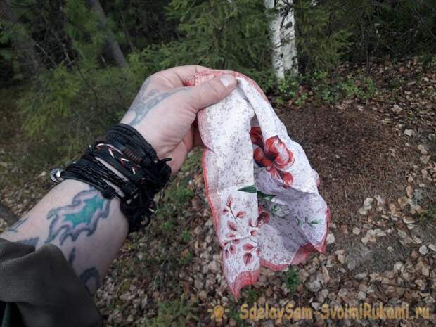 Понадобится носовой платок, или любая другая тканевая вещь.