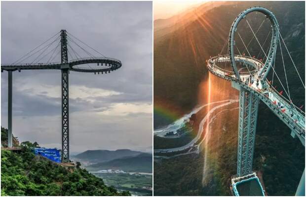 При упоминании о Китае и его новых достижениях каждый понимает, что речь идет о самом-самом. Особенно это касается мостов, в строительстве которых Поднебесной нет равных. Новые объекты, появившиеся в последние годы, удивляют и восхищают запредельной длиной, высотой расположения, функциональностью и, конечно же, потрясающей красотой. Не стал исключением и новый пешеходный мост, который не только побил несколько рекордов, но и в дополнение к массе необычных внедрений является самым масштабным круговым водопадом в мире.