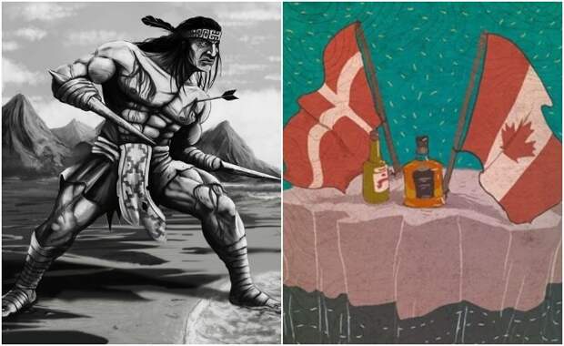 Не менее поразительный случай, когда две страны не могут поделить небольшой клочок земли, происходит, как ни странно, и сейчас. Однако эту «войну» можно назвать самой интеллигентной, потому что Канада и Дания воюет...флагами и бутылками с алкоголем. Местом территориального конфликта стал маленький необитаемый остров Ханс, который пытаются себе присвоить обе страны почти сорок лет, с 1984 года.