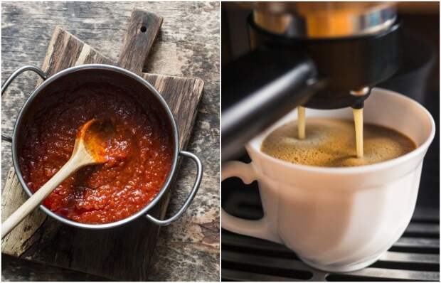 • Заварите чашку свежесваренного кофе и смешайте несколько столовых ложек с томатным соусом (это вариант для тех, кто не любит растворимый напиток).